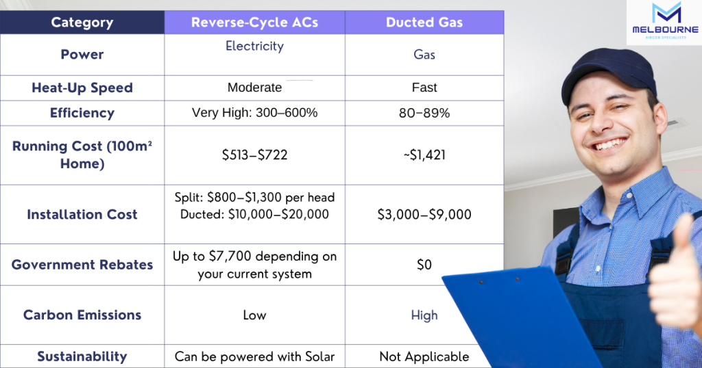 🔍 Reverse-Cycle AC vs Ducted Gas Heating
